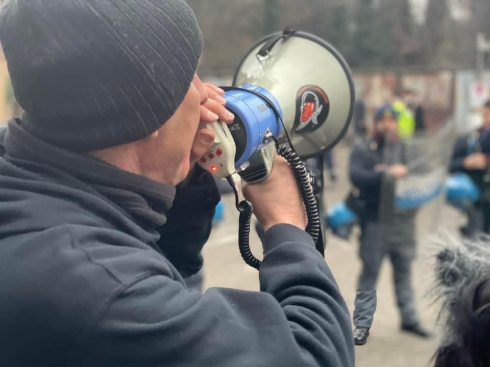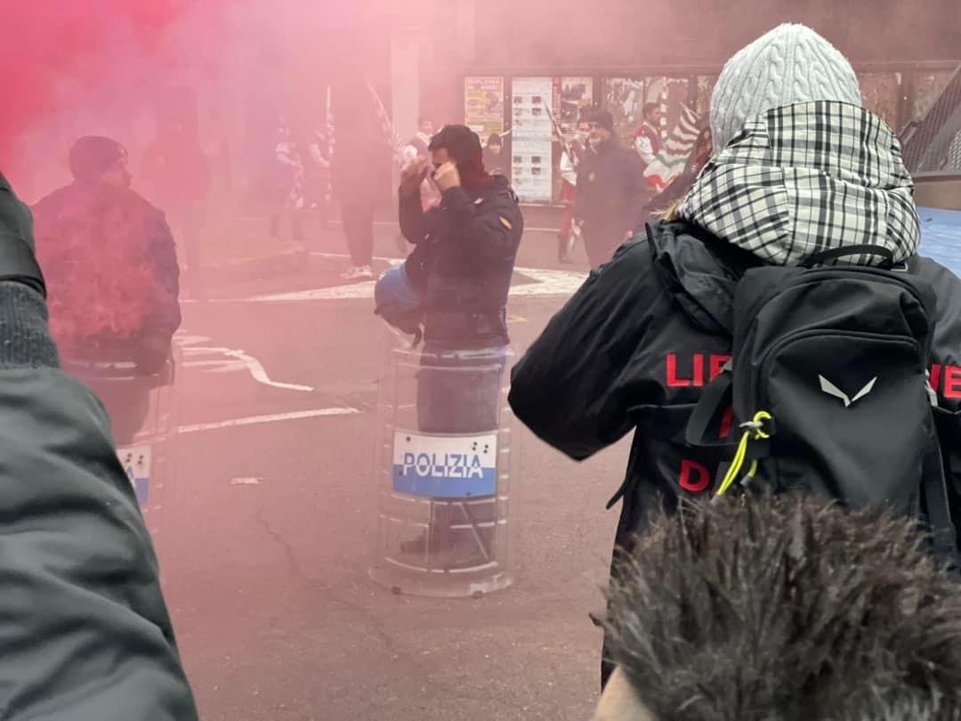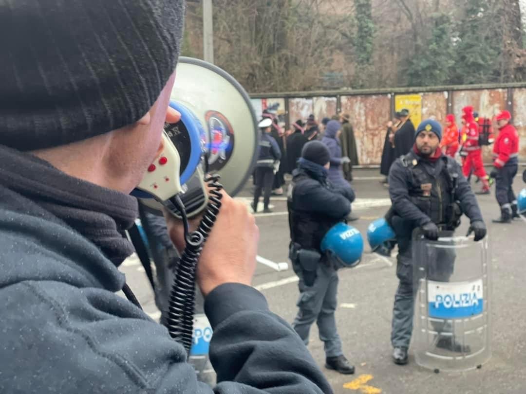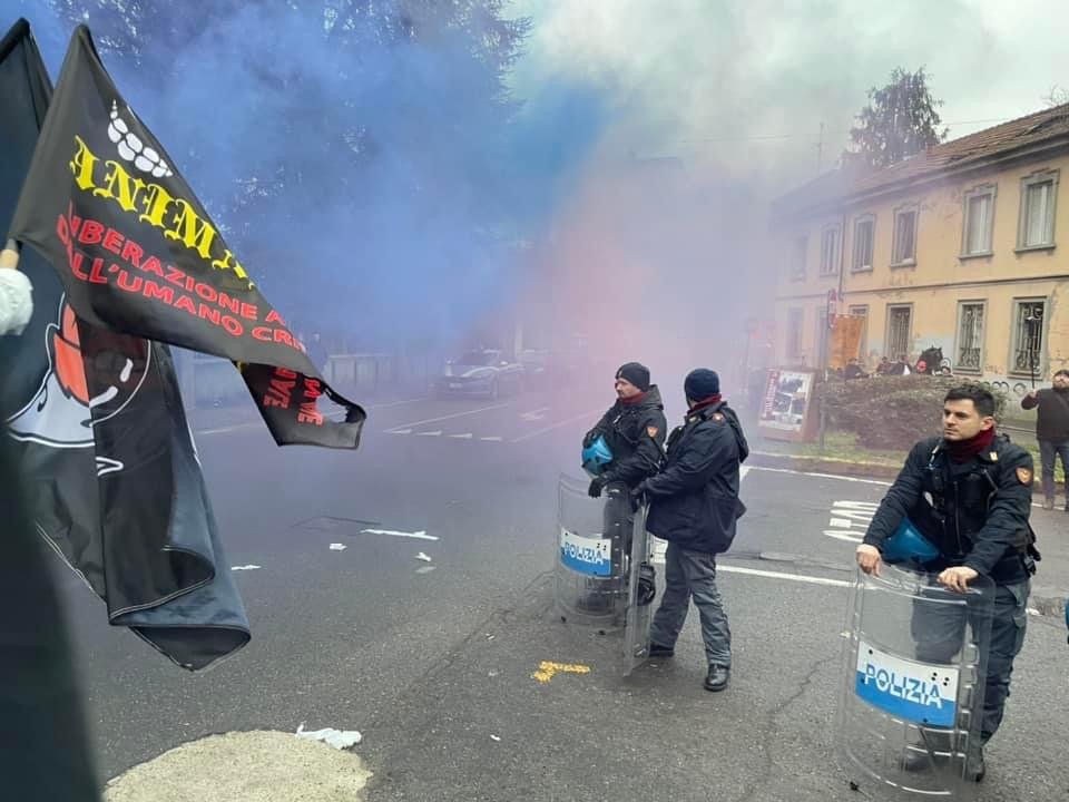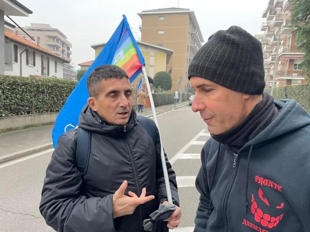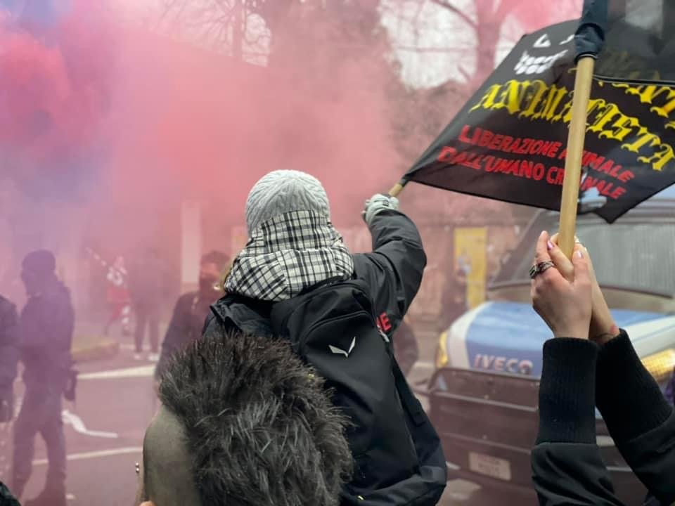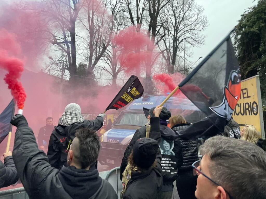 Militanti della Sinergia Animalista, domenica 15 gennaio, hanno contestato il corteo con gli Animali di Saronno. La “festa” dei Saronnesi è stata palesemente rovinata, FdO ovunque, pubblico tenuto a distanza per evitare pizze volanti, a dire il vero un fenomeno è arrivato alle spalle dei Militanti, ma ha passato un minuto da brivido, salvato dagli Agenti presenti prima che oltre ai calcioni, prendesse due sberloni sul muso.