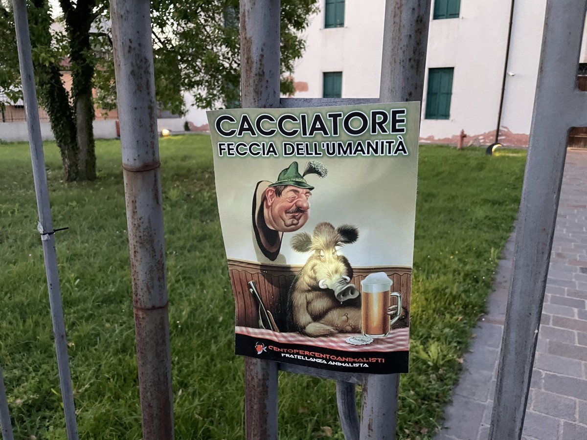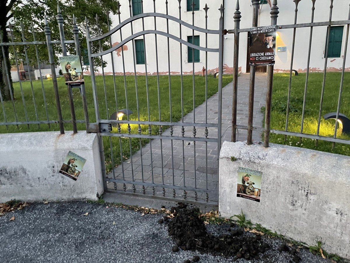 Nel tardo pomeriggio di martedì 25 maggio, Militanti di CENTOPERCENTOANIMALISTI si sono recati presso la sede dell’ente Parco dei colli Euganei a Este (Padova) ed hanno versato 10 Kg di sterco Equino davanti all’entrata, inoltre hanno affisso manifestini contro i cacciatori e uno di “monito”. La nostra lotta è ufficialmente iniziata.