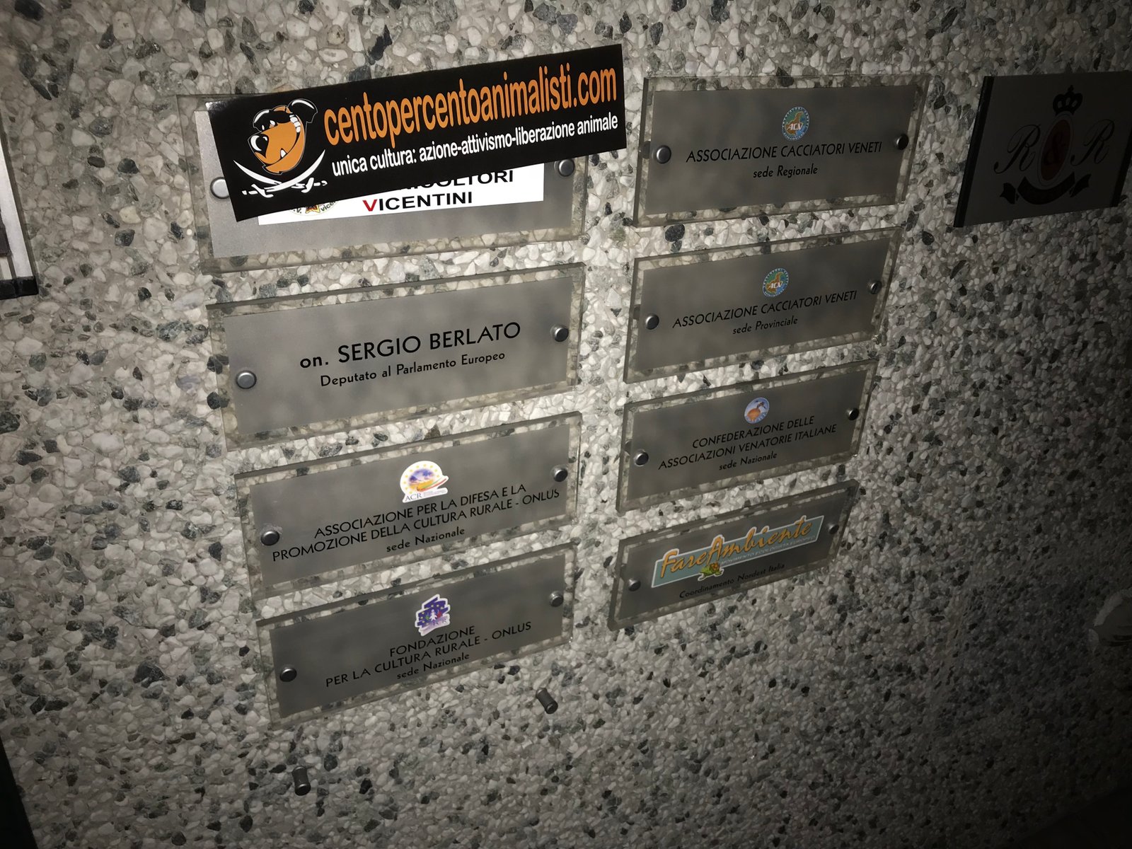 sterco gettato davanti alla sede di confavi a Thiene vs il cacciatore Berlato.