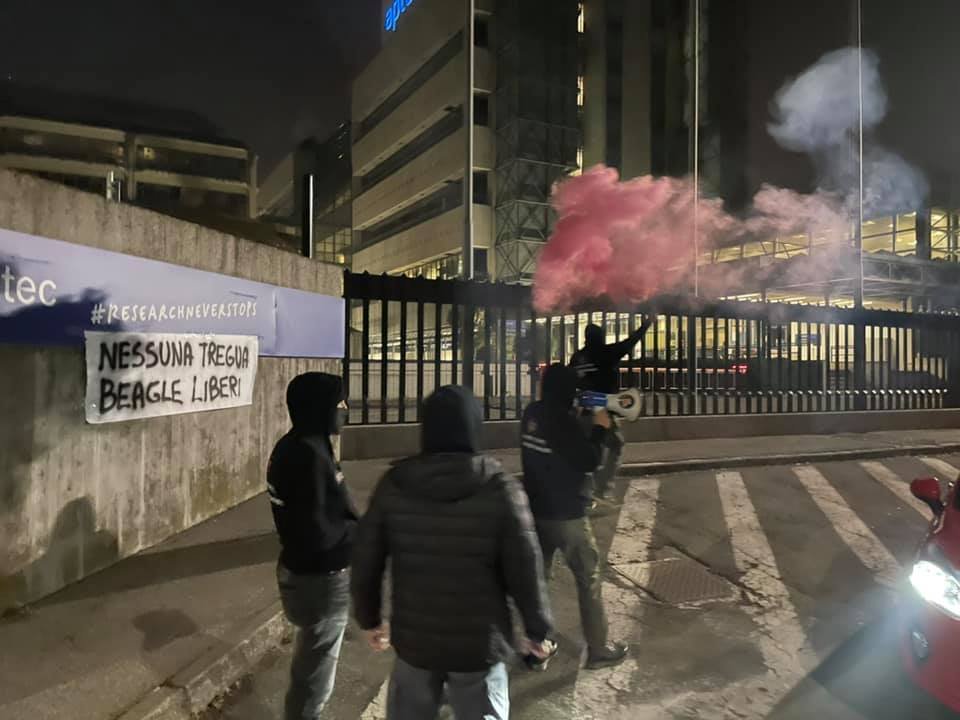 Le azioni determinate per la liberazione del Beagle continuano, alle ore 19.45 circa di giovedì 28 ottobre, Militanti del Movimento Centopercentoanimalisti si sono recati presso Aptuit in via Fleming a Verona, ed hanno versato