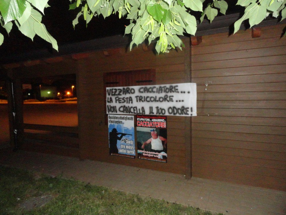 Sabato 18 aprile, dalle 14 alle 17, quindici militanti di CENTOPERCENTOANIMALISTI hanno presidiato l’entrata della fiera dei cacciatori/pescatori a Longarone (Belluno). Appuntamento che si ripete da anni: e, rispetto alle scorse edizioni, si è