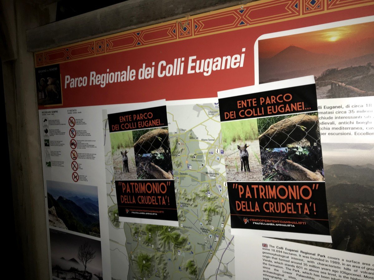 Scopo di un parco naturale dovrebbe essere quello di salvaguardare l’ambiente, i vegetali spontanei e gli Animali liberi che ci vivono. Al contrario, il Parco Colli Euganei è stato trasformato in un mattatoio per