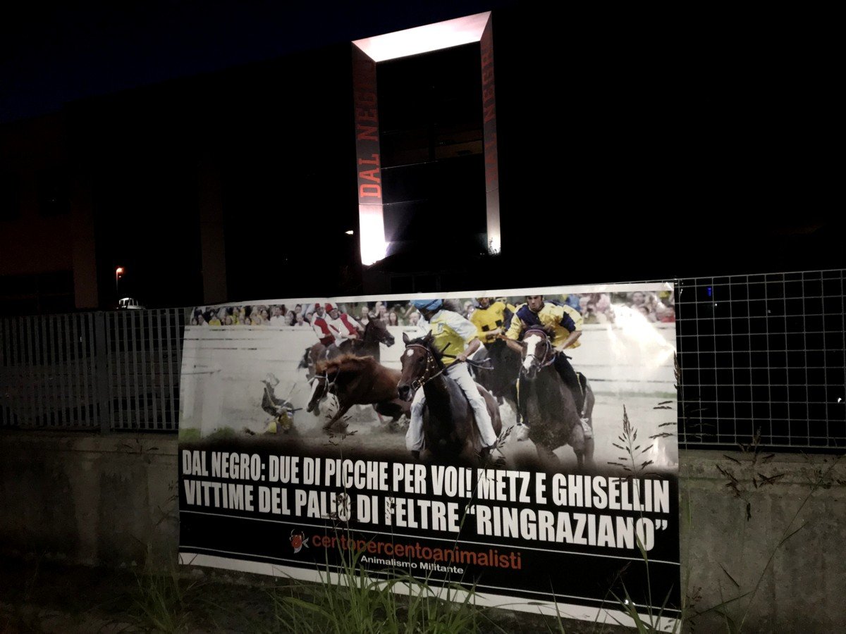 Domenica 5 agosto militanti di CENTOPERCENTOANIMALISTI erano presenti a Feltre (BL) per un presidio contro il palio, la corsa di Cavalli all’interno di una rievocazione storica. Presenti come ogni anno, dal 2007 : l’anno prima