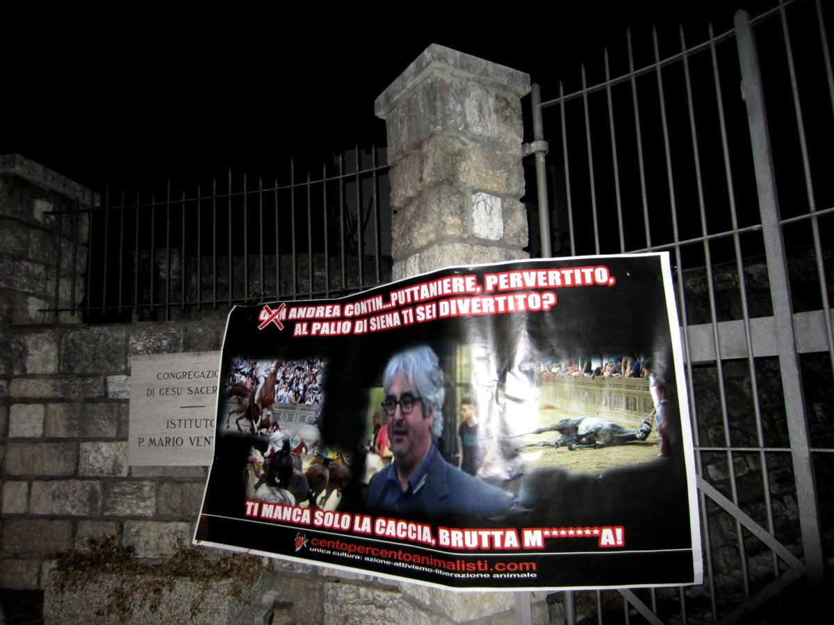 Nel marzo del 2014 un contradaiolo del palio di Siena denunciava il nostro leader Paolo Mocavero reo (secondo lui) di aver offeso la reputazione sua e del suo palio cittadino, nel sito di centopercentoanimalisti.