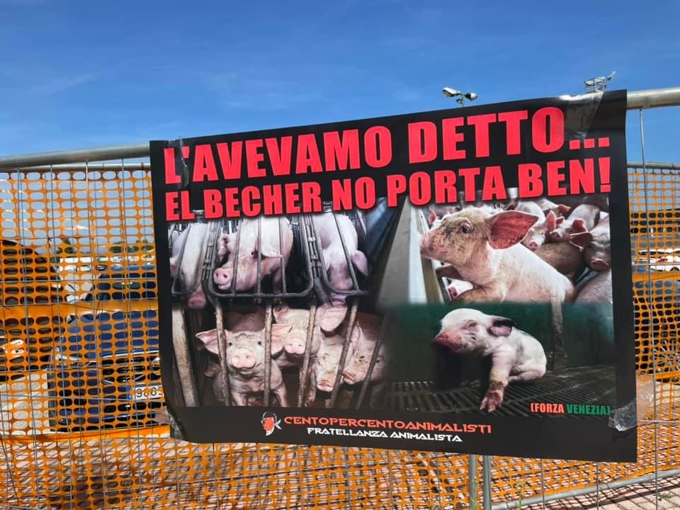 Il 31 agosto 2021, avevamo affisso sui cancelli del Taliercio di Mestre alcuni manifesti contro lo sponsor del Venezia calcio con scritto “el becher no porta ben” e purtroppo, così è stato per la