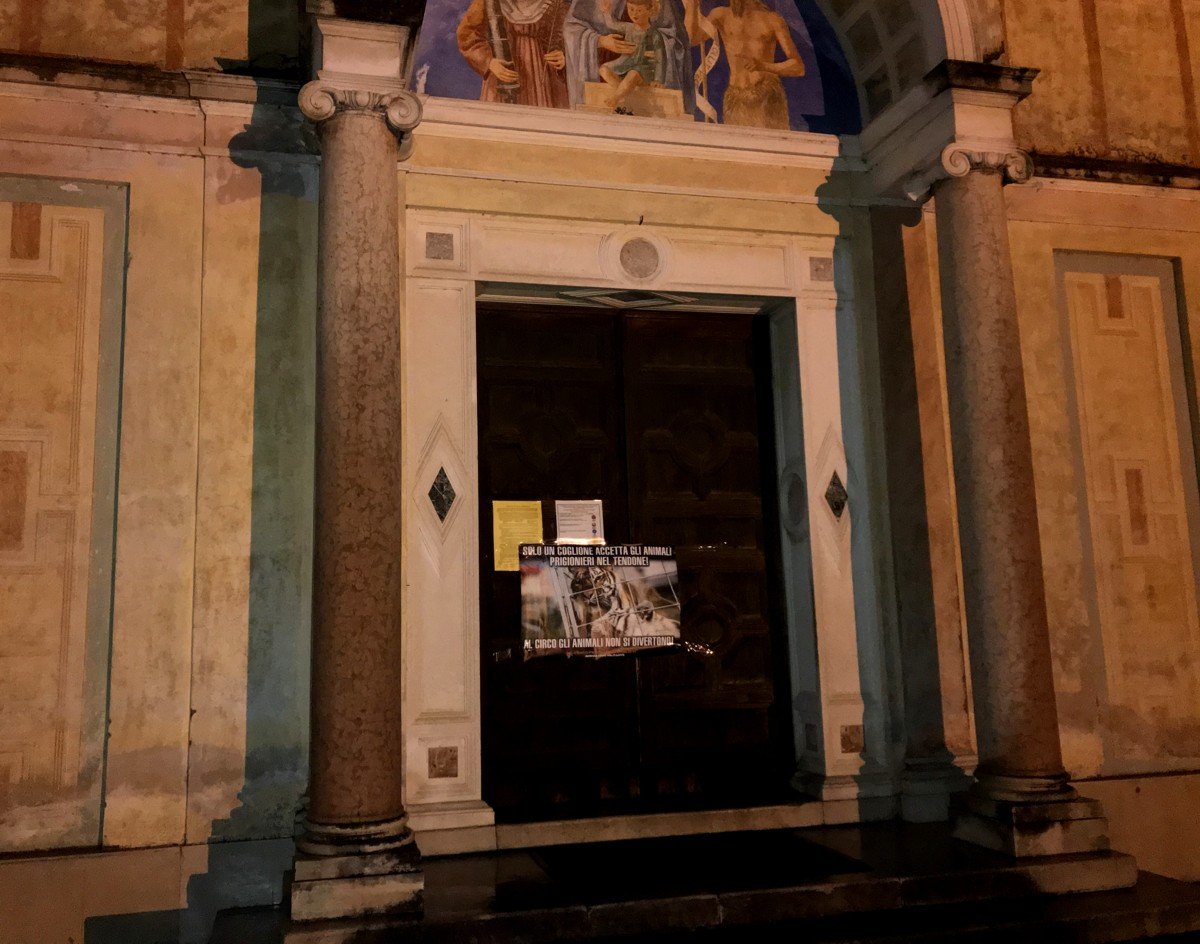 tappezzata la chiesa arcipretale di Sernaglia (TV) vs il parroco che ama il circo con Animali