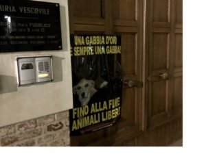 Nella notte tra l’11 e 12 febbraio, Militanti del Movimento CENTOPERCENTOANIMALISTI, hanno affisso sulla porta della Curia Vescovile di Treviso un manifesto di Liberazione Animale uguale a quello affisso mesi fa sulla statua del Gesù a Cusignana. Vogliamo una risposta, punto.
