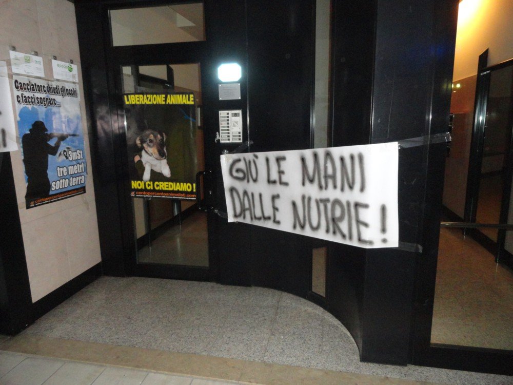 tappezzata la sede della coldiretti di Padova – blitz vs la mattanza delle Nutrie