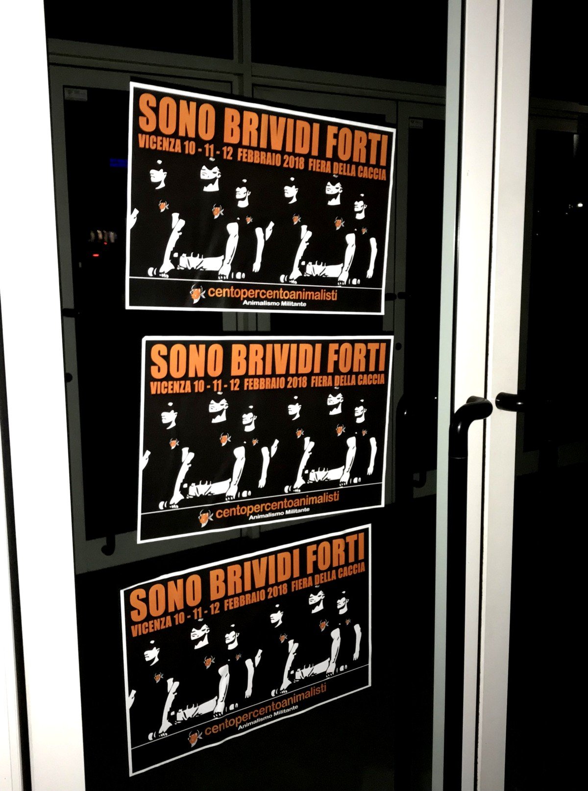 Per ribadire questo concetto, e in vista del 10, 11 e 12 febbraio, nostri militanti hanno tappezzato con locandine da “interpretare” a piacimento, la zona Fiera e il teatro Comunale di Vicenza gestito da Roberto Ditri, cacciatore e molto amico di Sergio Berlato, non a caso la prima fiera della caccia a Vicenza fu fatta sotto la sua presidenza con uno stipendio di 588.904  euro all’anno, inoltre tutti i convegni dei cacciatori vengono organizzati proprio in quel teatro, sarà un caso?