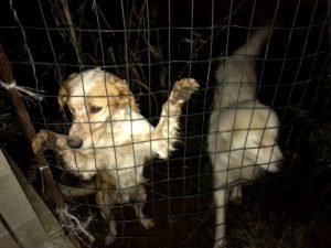 CENTOPERCENTOANIMALISTI si impegna a collaborare alla ricerca di una famiglia per i due pelosi. I nostri Militanti nel tardo pomeriggio sono andati a monitorare la situazione ed hanno affisso un manifesto molto chiaro sulla recinzione dove si trovano i due Cani, nella speranza che qualcuno si faccia vivo. Ovviamente delle persone trovate sul posto a cui sono state chieste informazioni, nessuno sapeva a chi è intestato il terreno.