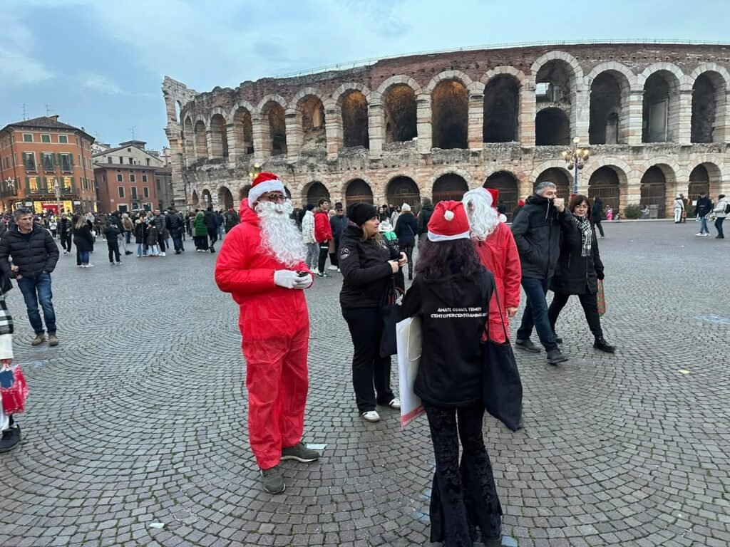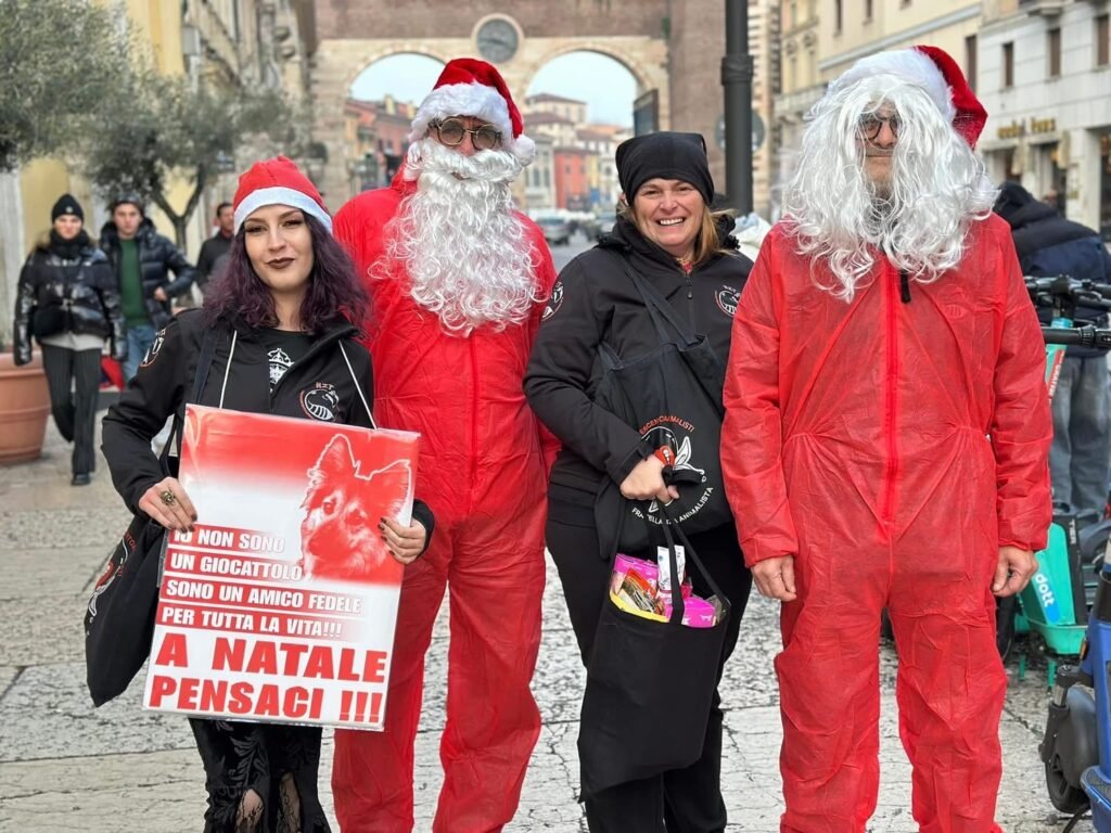 Sabato pomeriggio 14 dicembre, nel centro della città di Giulietta e Romeo, è arrivato in anticipo Babbo Natale Animalista, anzi, due per la precisione.