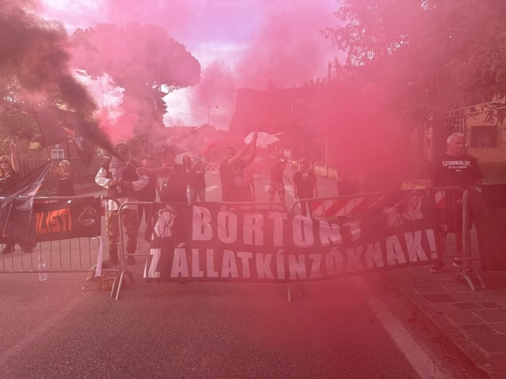 Al presidio hanno partecipato anche una delegazione di Animalisti Ungheresi dell’associazione Szurkolók az Állatokért Alapítvány arrivati da Budapest.